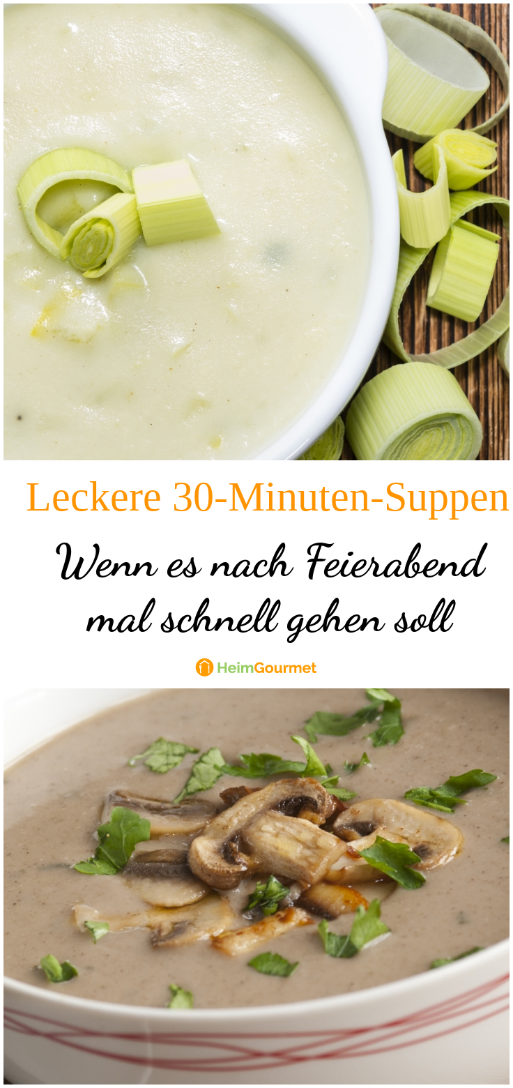 Nach einem langen Arbeitstag noch endlos lang am Herd zu stehen und ein aufwendiges Rezept zu kochen, klingt wohl für die wenigsten sonderlich verführerisch. Wenn es auch bei euch mal schneller gehen soll, haben wir hier leckere 30-Minuten-Suppen für euch, die leicht zuzubereiten, lecker und voll von Vitaminen sind. Damit ihr euch im Anschluss den wirklich angenehmen Seiten des Feierabends widmen könnt.