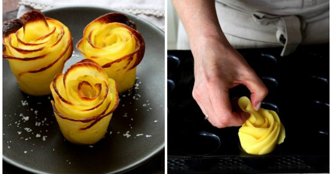 Eine kreative Idee für die nächste Essenseinladung. Dank der in Kartoffeln enthaltenden Stärke halten diese wunderschönen Rosen.