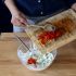 - Die Kuhlen mit Pesto, Frischkäse oder Tsatsiki mithilfe eines Löffels füllen.