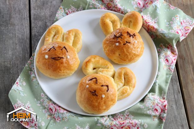Ein leckeres Highlight bei Eurem Osterfrühstück: Süße Osterhasen aus Hefeteig!