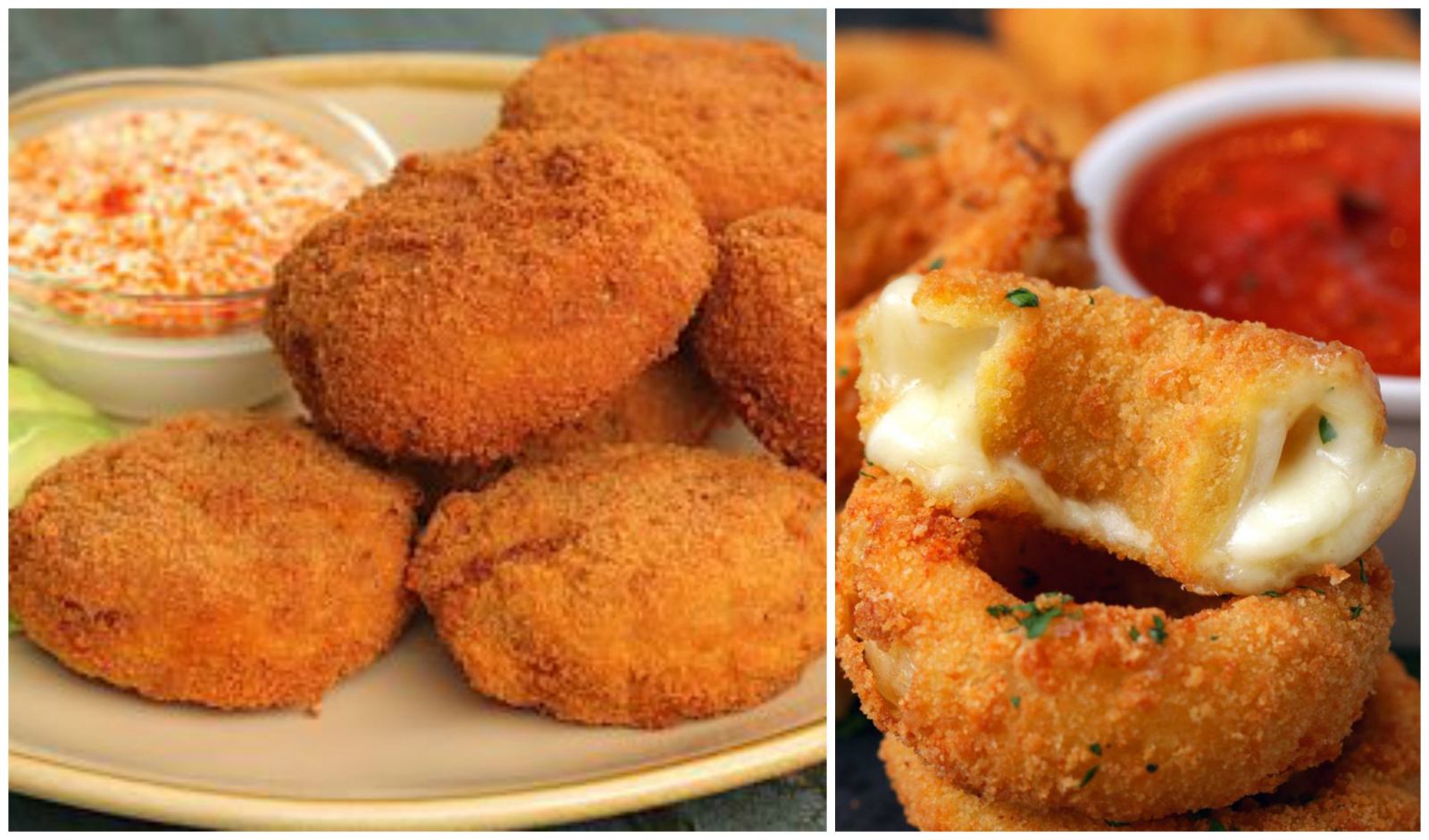 Köstlich knusprige panierte Zwiebelringe mit Hühnchen und Käse