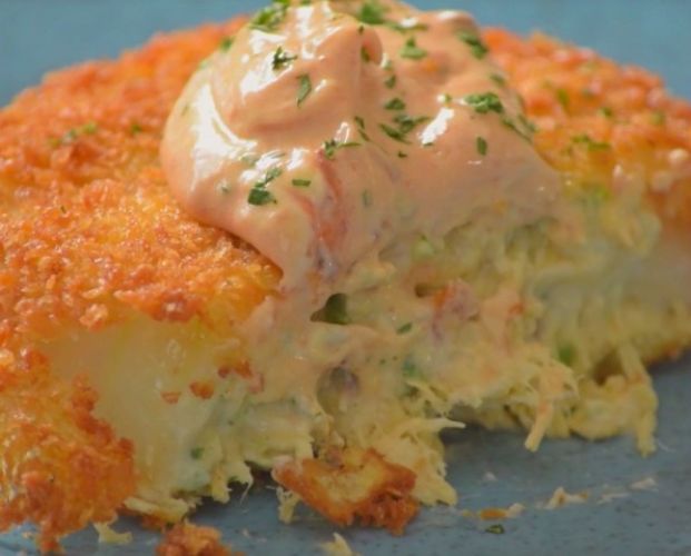 Köstlich knusprige panierte Zwiebelringe mit Hühnchen und Käse