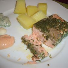 Abgesehen davon, dass sich Lachs meiner Meinung nach nicht zur warmen Zubereitetung eignet ... was auf dem Foto zu sehen ist, kann mit deinem Rezept nichts zu tun haben, da der Lachs auf dem Foto angebraten wurde. Es handelt sich hierbei auch nicht um Filet sondern um Steaks. Wie auch immer - ich hab dein Rezept streng nach den Angaben nachgekocht (den Lachs also in seinem eigenen Saft qualvoll zutodegegart) und was dabei herauskam war vollkommen ungenießbar. Spottet jeder Beschreibung. Die insgesamt 900 Gramm Lachssteak kamen zum Großteil in den Müll. (Zugegeben: Meine Frau hat mit Todesverachtung eines von den Steaks gegessen ...) Nie wieder Lachs!
