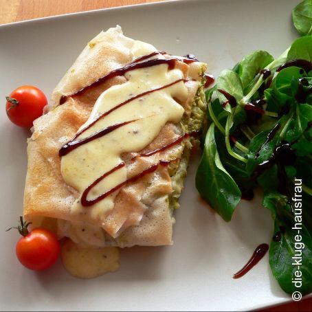 Brick im Zeichen der Ziege mit Sahneschaum an Feldsalat