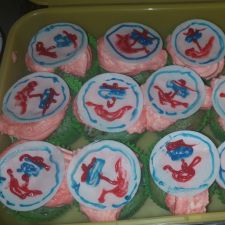 Aus dem restlichen Puderzucker und der restlichen blauen Lebensmittelfarbe, die wieder in etwas Wasser aufgelöst ist, einen dickflüssigen Guss anrühren. Die Muffinoberfläche damit einpinseln (etwas Guss für die Augen zurückbehalten) und die Muffins kopfüber in die blauen Kokosraspel tauchen. Dann ein kleines ovales Stück aus jedem Muffin schneiden und je 1/2 Cookie als Mund hineinstecken. Eventuell auch mit etwas Guss "ankleben". Die Augen auch mit dem Guss ankleben und dann alles ca.3 Stunden trocknen lassen.