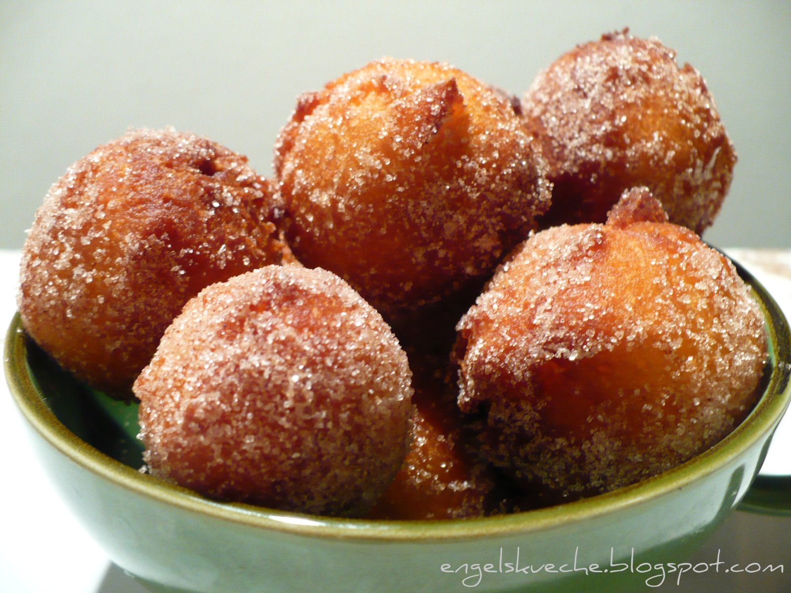 Frittierfett auf 170°C erhitzen, Teig mit 2 Löffeln etwa kugelförmig direkt in das Fett abstechen und goldbraun frittieren.