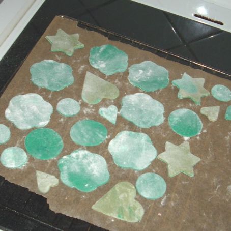 Die 4 verschiedenen Farben mit je 200ml Wasser verrühren, das Mehl dazugeben und dann Plätzchen ausstechen. Auf einem Backblech 10-15 Min backen.