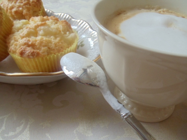 In einem weiterem Schüssel flüssige Zutaten mischen. Mehl-Mischung zur flüssiger Mischung geben, mit Hilfe einem Löffel vorsichtig rühren, bis alle Zutaten feucht werden. Teig in der Mulden gleichmäßig verteilen. 20 Min. backen, noch bissen in dem Backform ruhen lassen. Am besten schmeckt lauwarm.