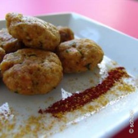 Die kleinen Klößchen in einer Pfanne in reichlich Öl anbraten.