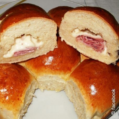 Den Teig in kleine Kugeln formen. In jede Kugel ein Stück Käse und Schinken in die Mitte füllen. Die Kugeln in eine Backform setzen und nochmals eine Stunde gehen lassen.