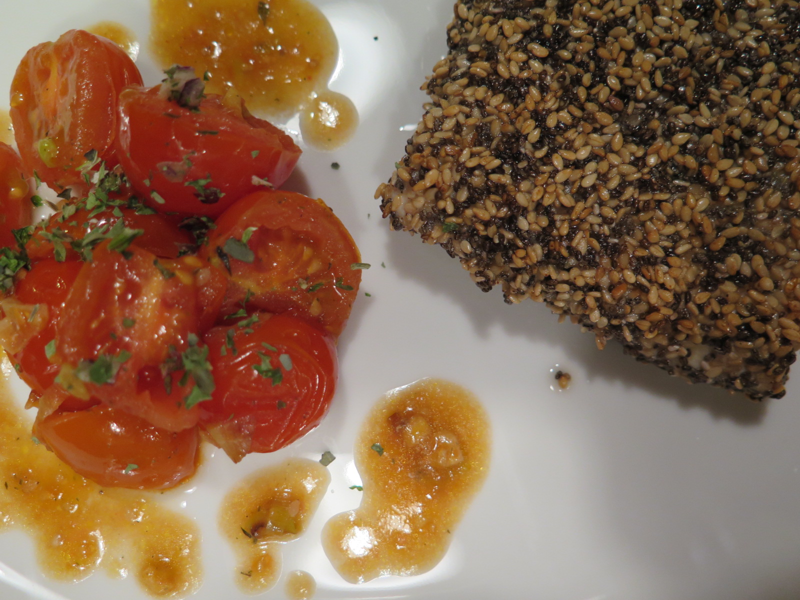 Power-Lachs mit lauwarmen Tomatensalat