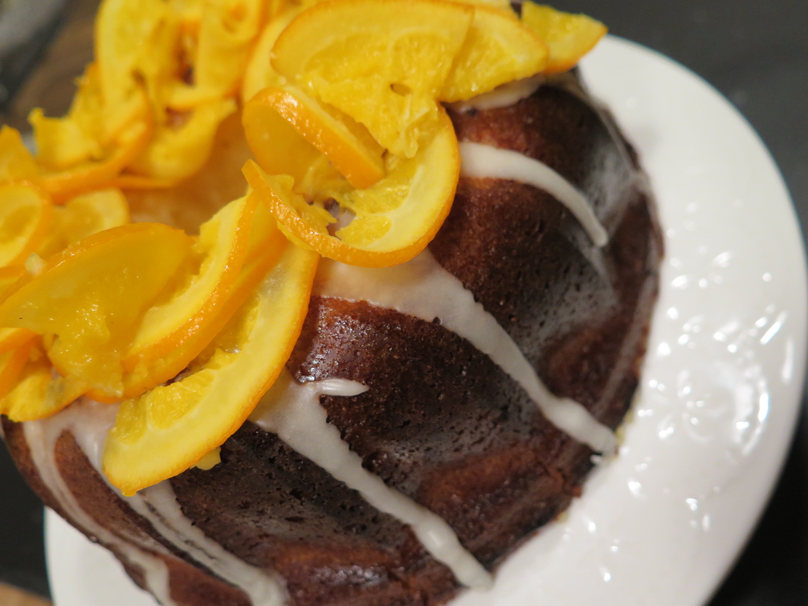 Den Kuchen aus dem Ofen nehmen und ca 20 Minuten auskühlen lassen. Stürzen, zurück in die Form geben und mit einem Schaschlikspieß mehrmals einstechen. Ca 50 ml Orangensaft über den Kuchen laufen lassen und dann vollständig in der Form auskühlen lassen.