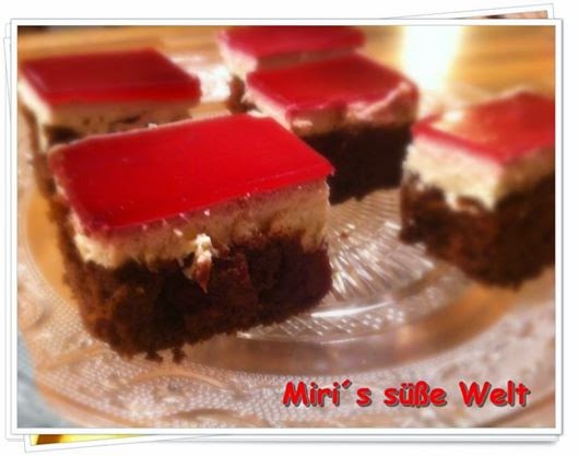 Den Backofen auf 180° Heißluft vorheizen. Butter mit Zucker und Vanillezucker schaumig rühren. Die Eier nach und nach dazugeben. Jedes Ei erst komplett einrühren lassen bevor das nächste dazu kommt. Mandeln, Lebkuchengewürz, Milch und Sirup unterrühren. Zitronensaft dazugeben. Mehl mit Kakao und Backpulver mischen und auf den Teig sieben, mit einem Schneebesen unterheben. Den Teig auf ein mit Backpapier ausgelegtes Blech streichen. Die Kirschen abtropfen lassen und den Saft dabei auffangen. Den Teig mit den Kirschen dicht belegen und 20-25 Minuten backen. Vollständig auskühlen lassen.