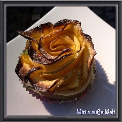 Den Ofen auf 180 Grad vorheizen. Die Äpfel mit einem Gemüsehobel in sehr dünne Scheiben hobeln. Den Blätterteig von der langen Seite her in sechs Streifen schneiden. Mit etwas Zimt/Zucker bestreuen und mit den Apfelscheiben dachziegelartig belegen. Oben sollen die Apfelscheiben etwas überstehen, unten aber bündig abschließen damit ihr sie einen besseren Stand haben. Die Streifen aufrollen und in die Muffinförmchen setzen. Wenn ihr kein Muffinblech habt könnt ihr sie auch in eine Auflaufform setzen. Sie brauchen nur etwas Halt sonst Backen sie ziemlich in die Breite.