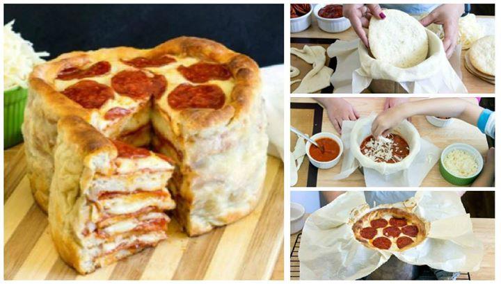 Die Springform mit etwas Olivenöl einölen. Den restlichen Teig auf einer leicht bemehlten Fläche ausrollen. Der Teig soll etwas größer sein als die Springform. Dann legt ihr das ganze in die Form und lasst den Rand etwas überhängen. Nun wird etwas Tomatensoße und Belag, Käse aufgelegt. Darauf kommt ein bereits vorgebackener Boden. Die anderen Böden werden ebenso verarbeitet. Auf den letzten Boden kommt nochmal Soße und Belag sowie viel Käse. Der überstehende Teig wird aufgerollt und als Rand aufgelegt.
