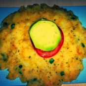 Nun formt ihr eine dicke Kugel aus dem Kartoffelstampf und presst sie fest zusammen. Legt die Kugel auf ein Brettchen und drückt sie platt. In die Mitte legt ihr eine Tomaten- sowie eine Avocadoscheibe. Die Seiten vorsichtig hochklappen und oben festdrücken.