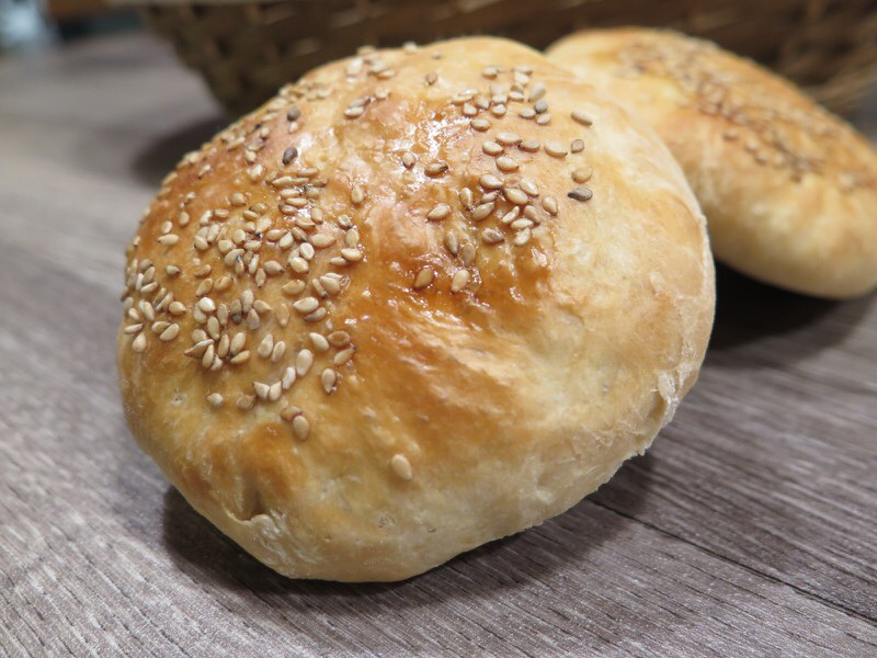 Den Backofen auf 200° Ober-/Unterhitze vorheizen. Das Eiweiß leicht verschlagen und die Buns damit bestreichen. Nun mit etwas Sesam bestreuen und für 12 - 15 Minuten im Ofen backen. Sie sollten leicht gebräunt sein.